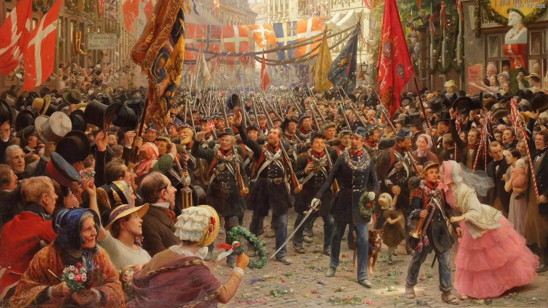 Flagi, Otto Bache, Malarstwo, Ludzie, Powitanie, Obraz, Żołnierze - faceci.biz